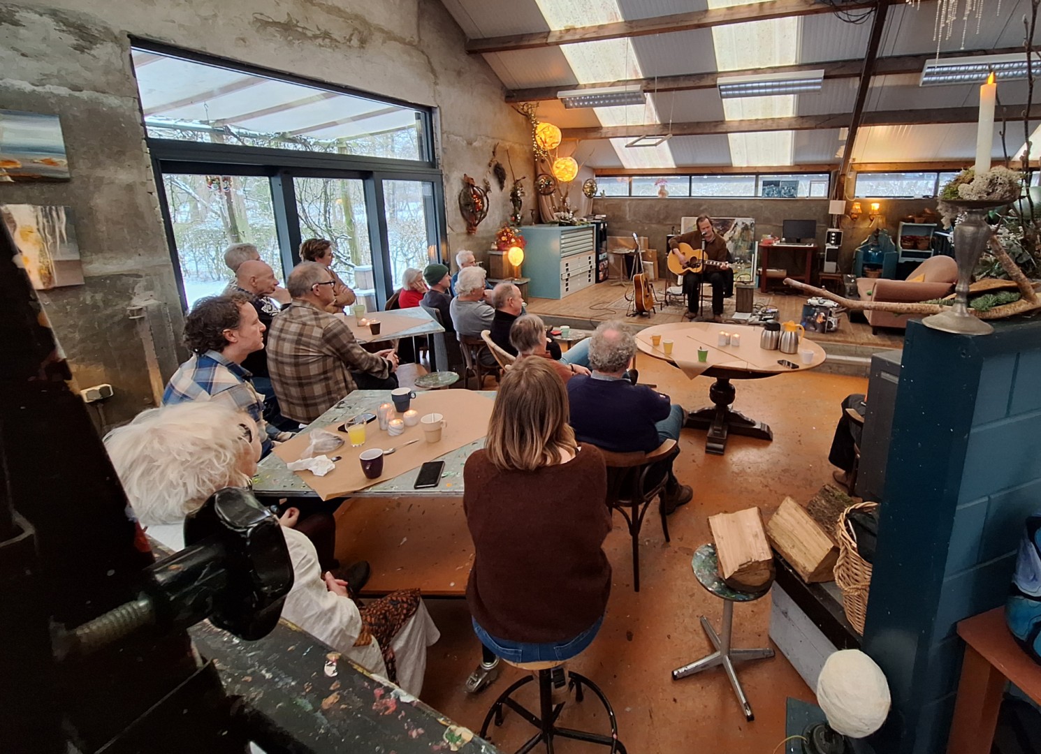 Een geweldig optreden in winterse sfeer bij haardvuur en geanimeerd publiek.